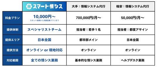 あらゆる情報システム業務をまるっとスマートにおまかせいただくことで、 他サービスと比較して高いコストパフォーマンスが期待できます。
