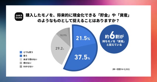 スニダンの調査によると、購入したモノを将来的に現金化できる「貯金」や「資産」と考える消費者が約6割にのぼり、購入品を価値として認識している人が多くいることが分かりました。(※3)単に使うために買うのではなく、“価値があるモノを保有する”という意識が存在しています。