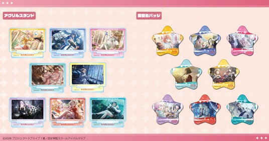 アクリルスタンドや星型缶バッジなどの定番商品のほか、