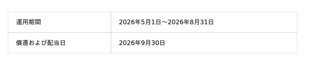 2026年4月23日(木)より一般募集を開始した以下ファンドにつきまして、おかげさまで募集金額全額のお申込をいただき、募集を終了したことをお知らせいたします。
