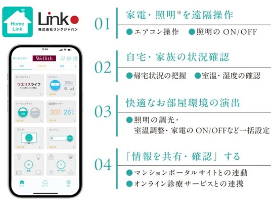 また、エアコン・テレビなどの家電制御や、オンライン診療がワンアプリで利用できるIoTプラットホームアプリ「HomeLink※1」を導入します。