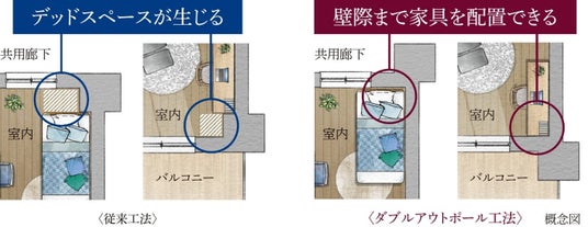 ダブルアウトポール工法によるスペースの有効活用