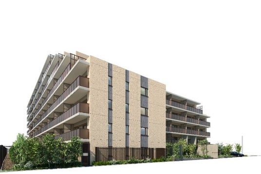 ※掲載の完成予想CGは、計画段階の図面及び周辺地図を基に描き起こしたもので、形状・色彩・植裁等は実際とは異なる場合があります。また、植栽は特定の季節の状況及び完成引渡時の状況を表現したものではありません。なお、施工上の理由及び改良のため、変更になる場合がありますのでご了承ください。なお、外壁形状の細部・設備機器等の詳細は表現しておりません。タイルや各種部材につきましては、実物の質感・色等の見え方が異なる場合があります。