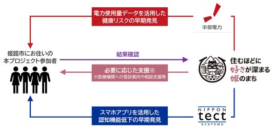 本日、兵庫県姫路市(以下「姫路市」)、中部電力株式会社(以下「中部電力」)、および日本テクトシステムズ株式会社(以下「日本テクトシステムズ」)の3者は、姫路市において、高齢者の認知機能の低下や健康リスクの兆候を早期に把握し、介護予防につなげるための共同プロジェクト(以下「本プロジェクト」)を開始しました。