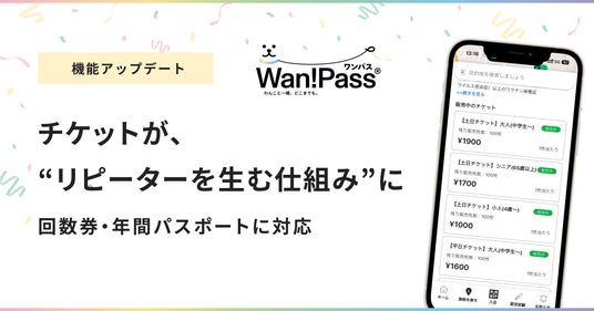 ペッツオーライ株式会社(本社:東京都中央区、代表取締役CEO:小早川 斉、以下ペッツオーライ)は、”ペットとのお出かけを支援するアプリ”「Wan!Pass(ワンパス)」で提供している施設向けの「チケット販売機能」を2026年3月23日にアップデートし、従来の1回券に加えて「回数券」や「年間パスポート」を販売することが可能になりました。チケットの有効期限を自由に設定できる機能も追加しています。