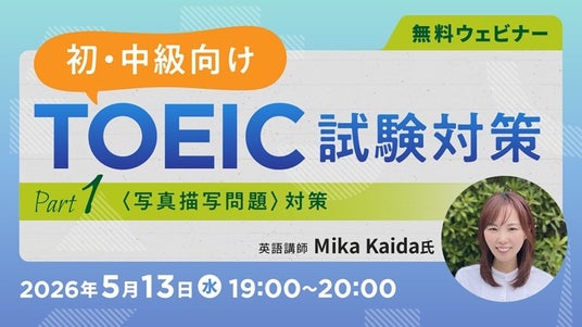 株式会社クリーク・アンド・リバー社(C&R社)は5月13日(水)と27日(水)に、TOEIC L&Rテストを受験予定の方を対象とした無料のオンラインセミナー「初・中級向け【TOEIC試験対策】 ~Part1(写真描写問題)対策~」・「中・上級向け【TOEIC試験対策】 ~Part 1(写真描写問題)対策~」を開催します。