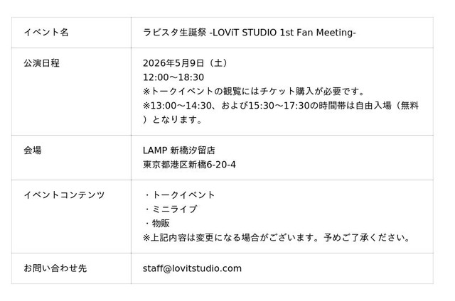 ラビスタ公式X:https://x.com/LOViT_STUDIO