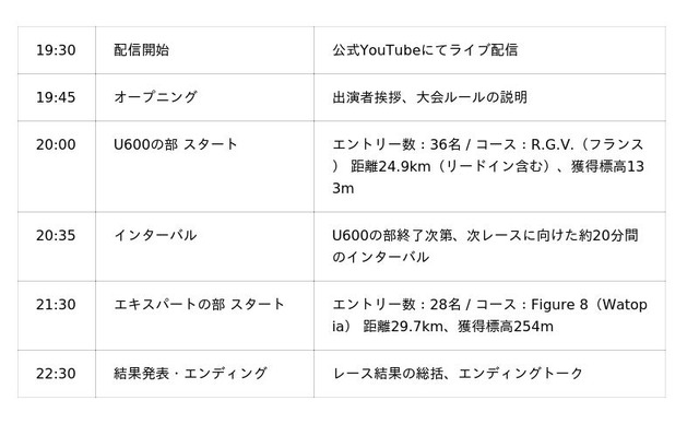 2つの異なる難易度とコースプロフィールを持つレースを連続して開催することで、本イベント内で多様なレース展開と戦術の妙を、視聴しても参加しても楽しむことができる構成となっています。