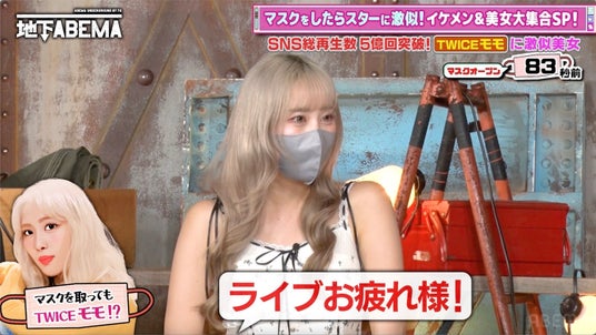 いよいよ草彅の「マスクオープン!」の掛け声で、Moekaさんがマスクを外すと「かわいい!笑っている方がTWICEのモモに似ている」との声があがりました。