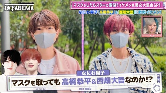 ほかにも、なにわ男子・西畑大吾に激似のとくまるさん、なにわ男子・高橋恭平に激似のしゅぷさんは、「似ているだけでブランド品をもらった」「韓国・明洞で本物と勘違いされた」「知らない人に食事を奢ってもらった」など、衝撃のモテエピソードを次々と告白。さらに、綾瀬はるかに激似のAYANEさん、山田裕貴にそっくりの山田さん、アンタッチャブル・山崎弘也似の稲吉繁光さんら個性豊かな面々が次々に登場した『ななにー 地下ABEMA』#115は現在「ABEMA」にて無料見逃し配信中です。