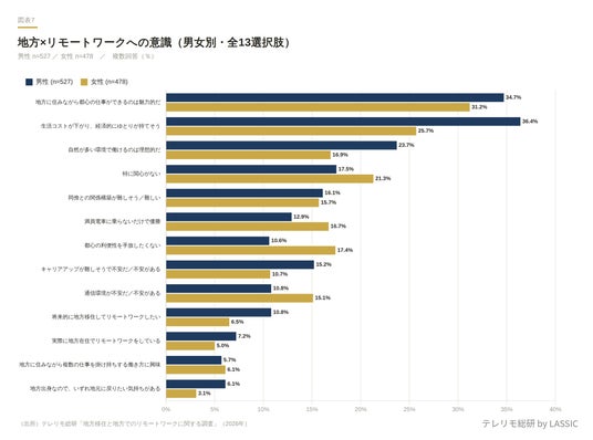 【図表7】「地方×リモートワーク」への意識(男女別・全13選択肢)