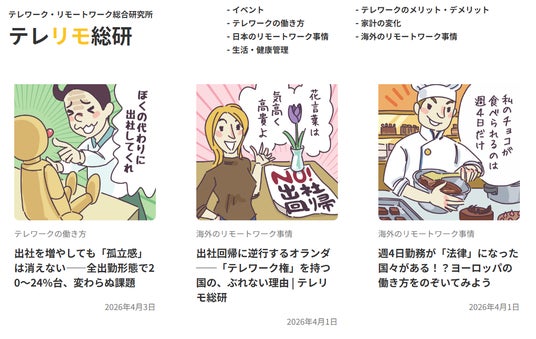 テレリモ総研では、人々が場所によって仕事内容や職種、勤務条件を左右されることなく活躍できる世界を実現すべく、テレワーク・リモートワークが働き方の選択肢の一つとして一般化することを目指し、多様な働き方に注目した情報をお届けしてまいります。
