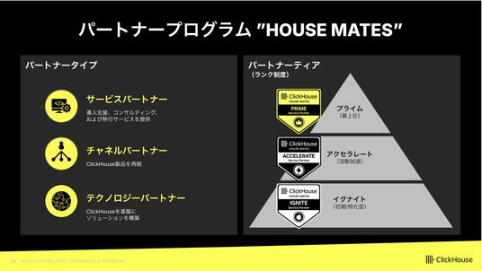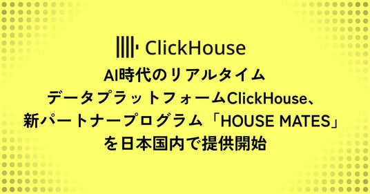 AI時代のリアルタイムデータプラットフォームのリーディングカンパニーであるClickHouse株式会社(本社:東京都港区、代表取締役社長:金古 毅、以下ClickHouse)は、パートナー企業との連携を強化し、顧客への最適なソリューション提供を目的とした新しいグローバルパートナープログラム「HOUSE MATES」を発表いたしました。本プログラムは、本日より日本国内のパートナー企業に対しても正式に適用を開始いたします。