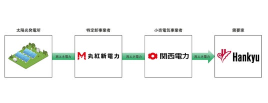 丸紅株式会社の連結子会社である丸紅新電力株式会社(以下「丸紅新電力」)と、関西電力株式会社(以下、関西電力」)は、阪急電鉄株式会社(以下、阪急電鉄)への太陽光発電所を活用した「オフサイトコーポレートPPA」(※)(以下「本契約」)の契約に合意しました。この取り組みは、複数の太陽光発電所で発電された約5,000kWの再エネ電力を丸紅新電力が特定卸事業者(アグリゲーター)としてとりまとめ、関西電力がオフサイトコーポレートPPAにて阪急電鉄へ供給するものです。