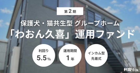 株式会社シーラホールディングス(本社:東京都渋谷区、代表取締役会長:杉本 宏之、証券コード:8887、以下「当社」)の連結子会社である株式会社シーラ(本社:東京都渋谷区、代表取締役:湯藤 善行、以下「シーラ」)は、不動産クラウドファンディングサービス「利回りくん」において、新ファンド『第2期 保護犬・猫共生型グループホーム「わおん久喜」運用ファンド』の募集を2026年4月27日より開始いたしました。
