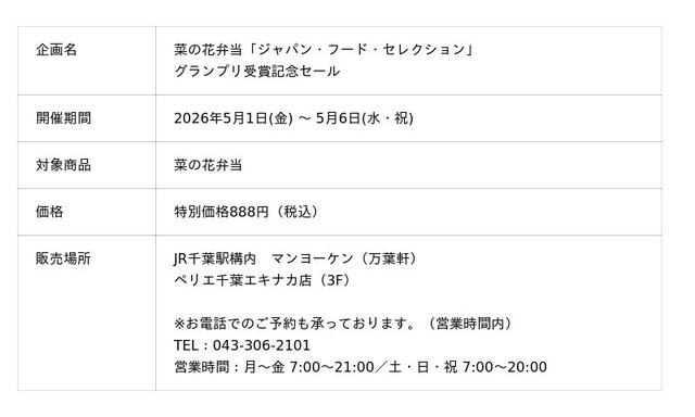 グランプリを受賞した『菜の花弁当』もお買い求めいただけます。