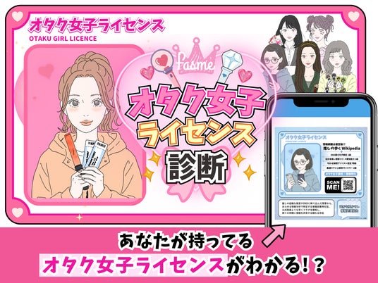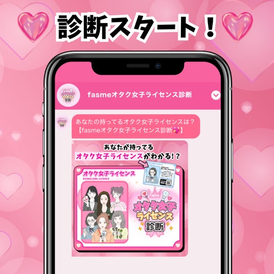 「fasmeオタク女子ライセンス診断」は、あなたのオタク属性から保有する「ライセンス」がわかるfasmeオリジナルの診断コンテンツです。