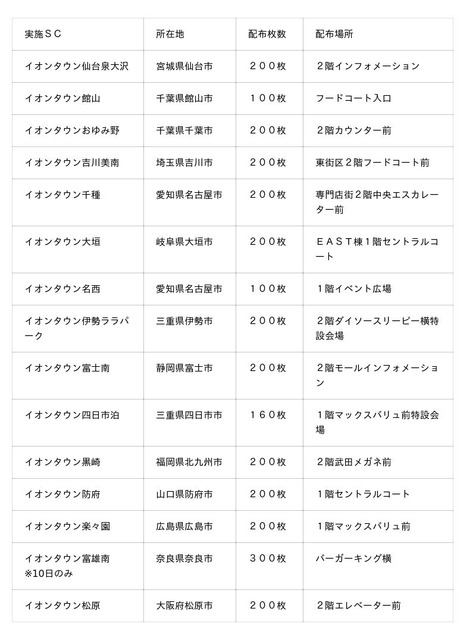 3.進呈内容:各日各SC先着で、対象のイオンタウンでの税込2000円以上のお買物で使える「500円分のお買物券」をプレゼント。