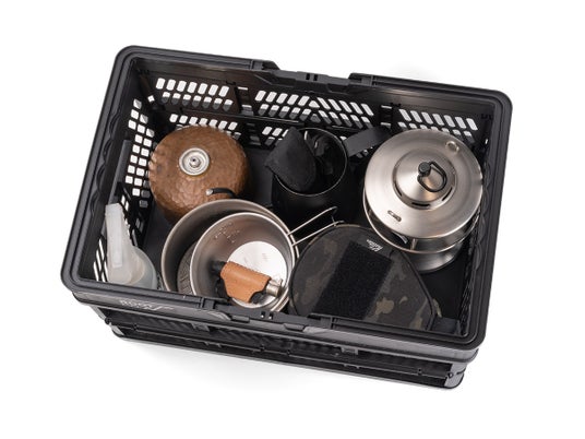 「PLAY FOLDING CONTAINER」は、キャンプやアウトドアはもちろん日常の収納にもフィットする、バスケットタイプの『軽量折り畳み式コンテナ』です。