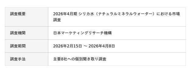 - シリカ水市場において、売上・通信販売本数・累計販売本数の3部門でNo.1を獲得- 第三者機関である日本マーケティングリサーチ機構により、主要8社へ聞き取り調査を実施