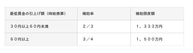 ※令和8年3月の事業場内最低賃金を基準として、補助対象期間終了までの間に事業場内最低賃金の引上げを行う中小企業者等については、理事長が適当と認めた場合、その引上げ額に応じて補助率及び補助限度額を以下のとおりとします。