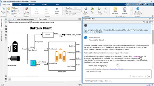 Simulink Copilot にモデルの設計変更方法を問い合わせると、実践的で段階的なガイダンスが得られます。