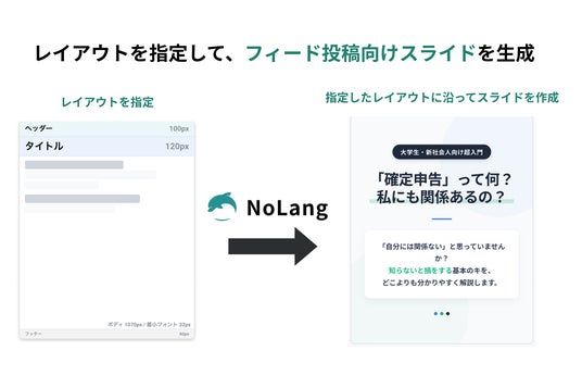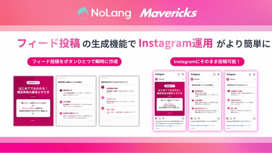 日本発、動画生成AI「NoLang(ノーラン)」を提供する株式会社Mavericks(本社:東京都文京区、代表者:代表取締役社長 奥野 将太)は、この度、NoLangのスライド生成機能において、Instagramフィード・カルーセル投稿に最適化された4:5サイズ(1080×1350px)のスライド生成に新たに対応予定です(2026年4月末公開予定)。