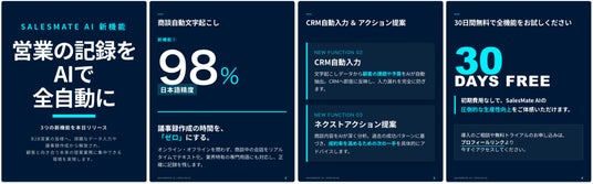 そして、NoLangのスライド生成機能は日本語コンテンツに最適化されている点も大きな特長です。日本語フォントの可読性や行間設計、日本のビジネス・SNS文化に馴染むレイアウト・配色パターンに特化しているため、海外製のAIスライドツールでは再現しきれない、日本市場向けの豊富なデザインバリエーションを提供します。日本人にとって違和感のない自然な仕上がりで、国内の情報発信・マーケティング文脈にそのまま馴染む4:5スライドを生成できます。