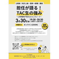 【TAC公務員】「担任が語る!TAC生の強み~公務員講座いま始めるならこのコース~」を2026年3月30日(月)にオンラインで配信!