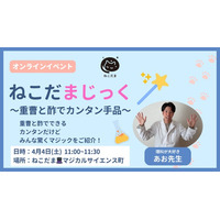 【小中学生対象】春休み特別イベント「ねこだまじっく」 を4月4日(土)にオンライン開催!~楽しく理科を”あそび・まなぶ”『おうちでできるカンタン科学手品』~