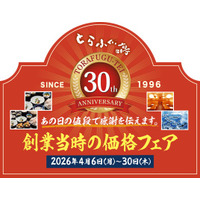 祝!とらふぐ亭30周年!『創業当時の価格フェア』令和8年4月6日(月)~4月30日(木)まで開催!