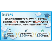 個人契約の家庭教師サイト「かてナビ」、登録講師数200名・noteフォロワー数3,000名を突破!さらなるマッチング拡大に向け、指導料の最低設定価格を改定。