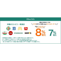 三井住友銀行「Olive」、対象のコンビニ・飲食店にて最大8%還元に