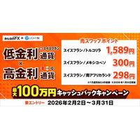 【みんなのFX】2月2日(月)より 「スイスフラン×高金利通貨 最大100万円キャッシュバックキャンペーン」を開催!