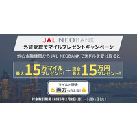 JAL NEOBANK、「外貨受取でマイルプレゼントキャンペーン」を実施~受取金額に応じて最大15万マイルプレゼント~