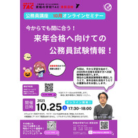 【TAC公務員】「今からでも間に合う!来年合格へ向けての公務員試験情報!」を10/25(土)に開催