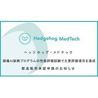 ヘッジホッグ・メドテック、日本初「頭痛AI診断プログラム」の製造販売承認申請のお知らせ