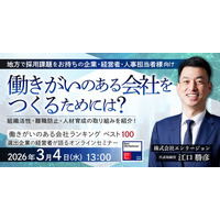 【4年連続認定・3年連続ベスト100に選出】エンリージョン「働きがいのある会社ランキング」小規模部門21位に選出。地方企業の経営者・人事担当者向けにセミナーを3月4日に開催。