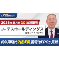 テスホールディングス、YouTube「上場企業IR動画チャンネル」にて決算説明動画(2026年6月期第2四半期)を公開