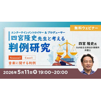 【エンタメ業界】知っておきたい!音楽に関する重要判例を学ぼう!5/11(月)無料セミナー「エンターテインメントロイヤー&プロデューサー・四宮隆史先生と考える判例研究 Season2」