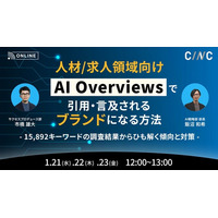 【1/21(水)~1/23(金)】オンラインセミナー『【人材/求人領域向け】AI Overviewsで引用・言及されるブランドになる方法~15,892キーワードの調査結果からひも解く傾向と対策~』開催