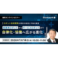 【1月14日(水) 無料セミナー】『ロボット技術開発の現状の総括と今後の展望 ― 産業用ロボットからサービスロボットまで、自律化・協働へ広がる進化』(ストックマーク主催)