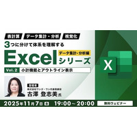 【Excel中級者】テーブル機能や基礎分析など業務に役立つ知識を習得しよう!11/7(金)・11/21(金)無料セミナー「3つに分けて体系を理解するExcelシリーズ データ集計・分析編」開催