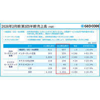 ジオコードがAI積極活用で黒字転換、インターネット広告(前年同四半期比+42.3%)と営業支援ツール「ネクストSFA/CRM」(同+24.9%)が大きく伸長