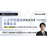【1月22日(木) 無料セミナー】『人工知能技術がもたらす産業変革 ― 画像・映像認識などの技術応用と実社会への導入』を開催(ストックマーク主催)