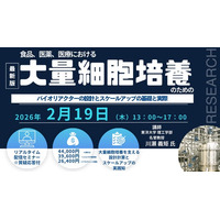 【ライブ配信/ZOOM】「食品、医薬、医療における大量細胞培養のためのバイオリアクターの設計とスケールアップの基礎と実際」セミナー開催!2026年2月19日(木)主催:(株)シーエムシー・リサーチ