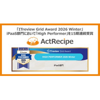 iPaaS「ActRecipe」が「ITreview Grid Award 2026 Winter」において「High Performer」を15期連続受賞