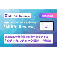 製薬企業向け資材一次レビューAIサービス『MIRAI Review』に、元文献との整合性を自動チェックする「メディカルチェック機能」を追加
